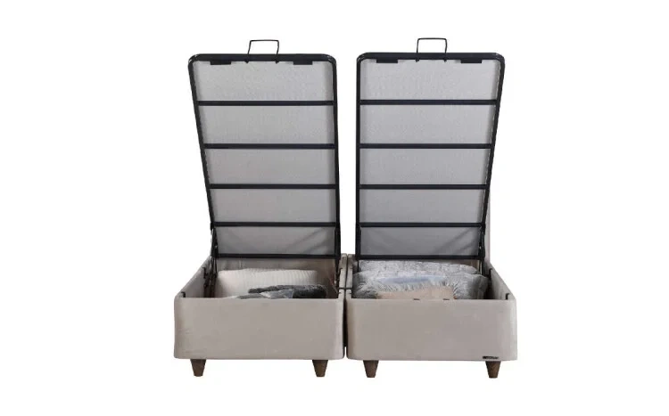 Bazanın kolay bir şekilde açılmasını mümkün kılan amortisörleri ile son derece fonksiyonel bir tasarım sunan bu sandıklı baza, sessiz kapatmaya fırsat tanıyan stoper sistemi ve güvenli bir kullanım sunan emniyet kilidi ile göz dolduruyor. İskelet yapısında tercih edilen çelik konstrüksiyon sayesinde uzun süreli kullanım imkânı bulunan bu 150x200 sandıklı baza modeli, geniş iç hacmi ile de farklı pek çok ürün için ekstra muhafaza alanı oluşturuyor.Sadece Baza fiyatıdır.Başlık dahil değildir.