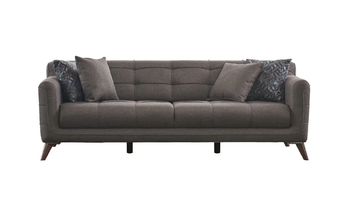 Easy Bed yatak mekanizması sayesinde tek harekette yatak olabilen Berry üçlü koltuk, yerden yüksek ayak yapısı ile kolayca temizlenebiliyor.