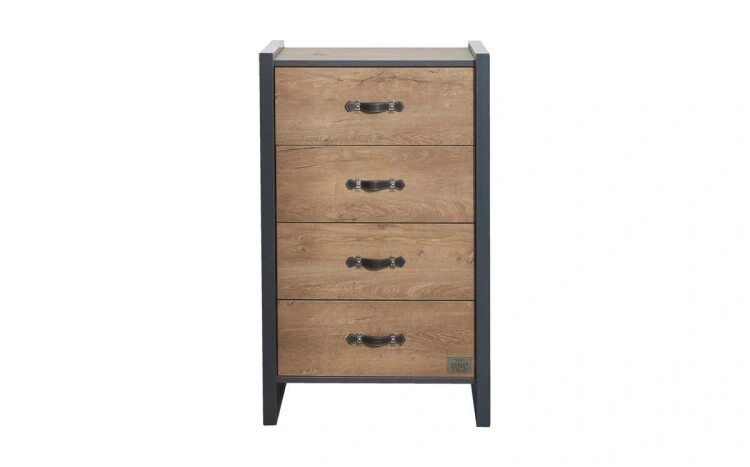 Özellikle de dar alanlar için son derece kullanışlı bir parça olan Brooklyn yüksek şifonyer, geniş iç hacmi ile farklı pek çok tekstil ürününün düzenli bir şekilde depolanacağı alanı sunuyor. 4 çekmeceli tasarımın sunduğu kullanışlılık sayesinde yatak odalarında kendine has bir köşe kazanacak olan bu yüksek şifonyer modeli, ahşap ve metalin uyumunu deri kulp detaylarıyla hoş bir şekilde taçlandırıyor. Çekmecelerine ek olarak üst kısmında da çeşitli dekoratif objeler için kullanışlı bir alan sunan Brooklyn yüksek şifonyer, kaliteli hammaddenin sağladığı dayanıklı duruşu yatak odalarınıza getiriyor.