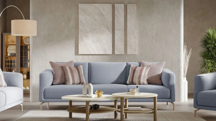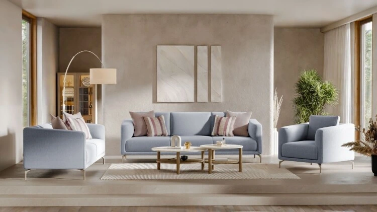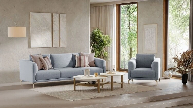 Gaia serisi, konforu ve estetiği kusursuz bir uyum içinde sunan oturma gruplarıyla öne çıkıyor. Özenle tasarlanmış minderler ve ergonomik sırt destekleri, bedeninizi dinlendirirken ruhunuzu da ferahlatıyor. Mavi ve lila gibi yatıştırıcı tonların doğal renk paletiyle harmanlandığı zarif kumaş seçimleri, mekâna taze bir soluk getiriyor.