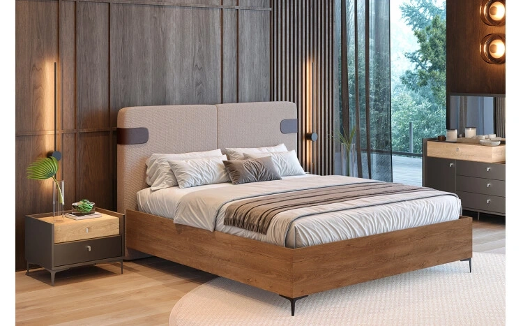 Metropol Yatak Odası, doğal meşe ve kahve antrasit tonlarının zarif uyumuyla yaşam alanınıza modern ve şık bir dokunuş getiriyor. Meşe renginin sıcak ve rustik dokusu, huzurlu bir atmosfer oluştururken, koyu renkteki antrasit detaylar, kontrast yaratarak minimalist bir zarafet sunuyor. Hem estetik hem de işlevsel bir tasarımla öne çıkan Metropol Yatak Odası, konforu ve stil sahibi bir yaşamı bir araya getiriyor.
