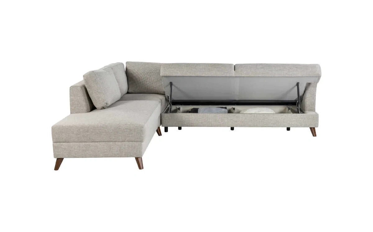 Family mekanizması sayesinde köşe takımının sırt kısmını yatırınca duvara sıfır olarak yatak ve sandık olma özelliği