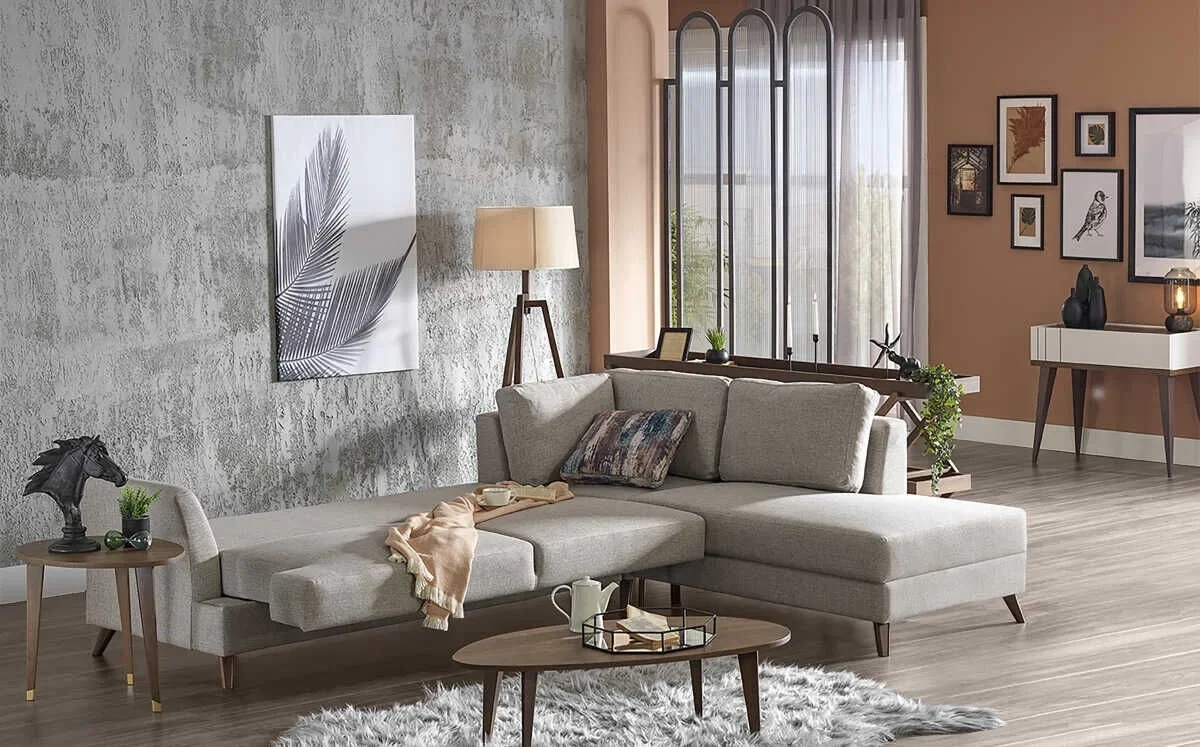 Family mekanizması sayesinde köşe takımının sırt kısmını yatırınca duvara sıfır olarak yatak ve sandık olma özelliği