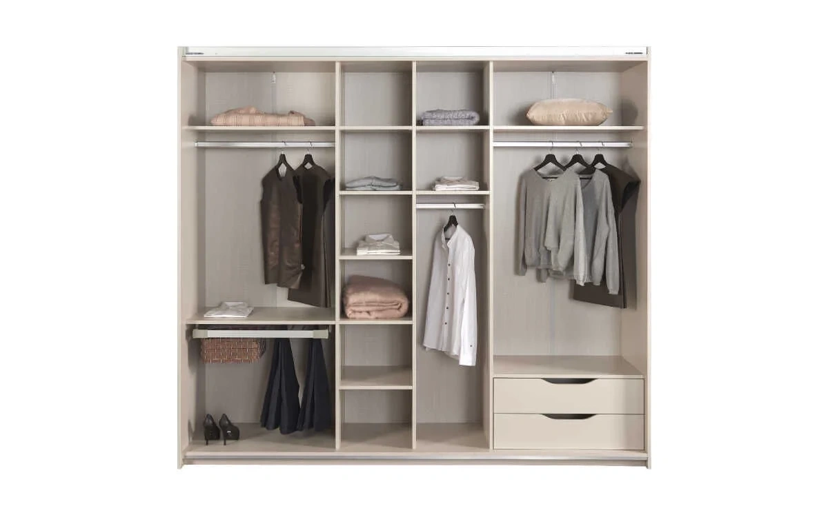 Vegas sürgülü gardırobun çok sayıda bölmesi, evinizdeki giyecekleri rahat bir şekilde muhafaza etmenizi sağlıyor. Ürünün kapak kısmının bir bölümünde bulunan ayna ise gardıroba şıklık kazandırırken aynı zamanda iç mekâna ferahlık katıyor. Yatak odanızdaki yatak, komodin ya da şifonyer gibi ürünlerle uyum sağlayacak şekilde tasarlanan gardırop bej rengi ile de dikkat çekiyor. Bu sayede ürünün diğer eşyalara uyum sağlaması da kolaylaşıyor. Siz de yatak odanızda şık ve kullanışlı bir çözüm için Vegas 6 kapılı sürgülü gardırobu tercih edebilirsiniz.