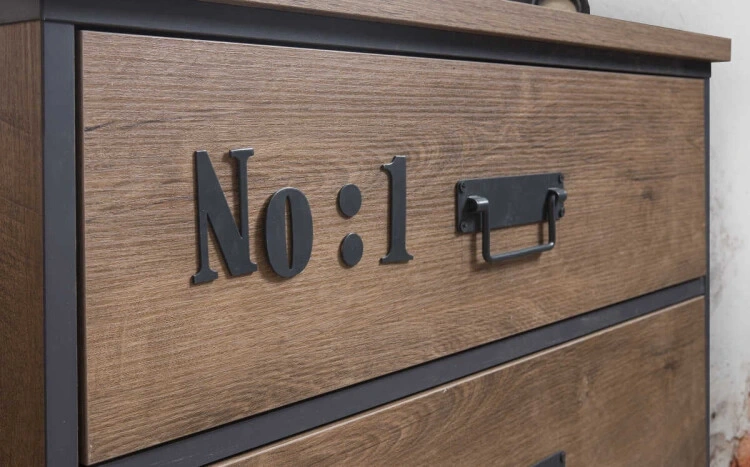 Koleksiyona özel tasarlanan anrasit renk kenar bant uygulaması ve antik görünümlü kulp